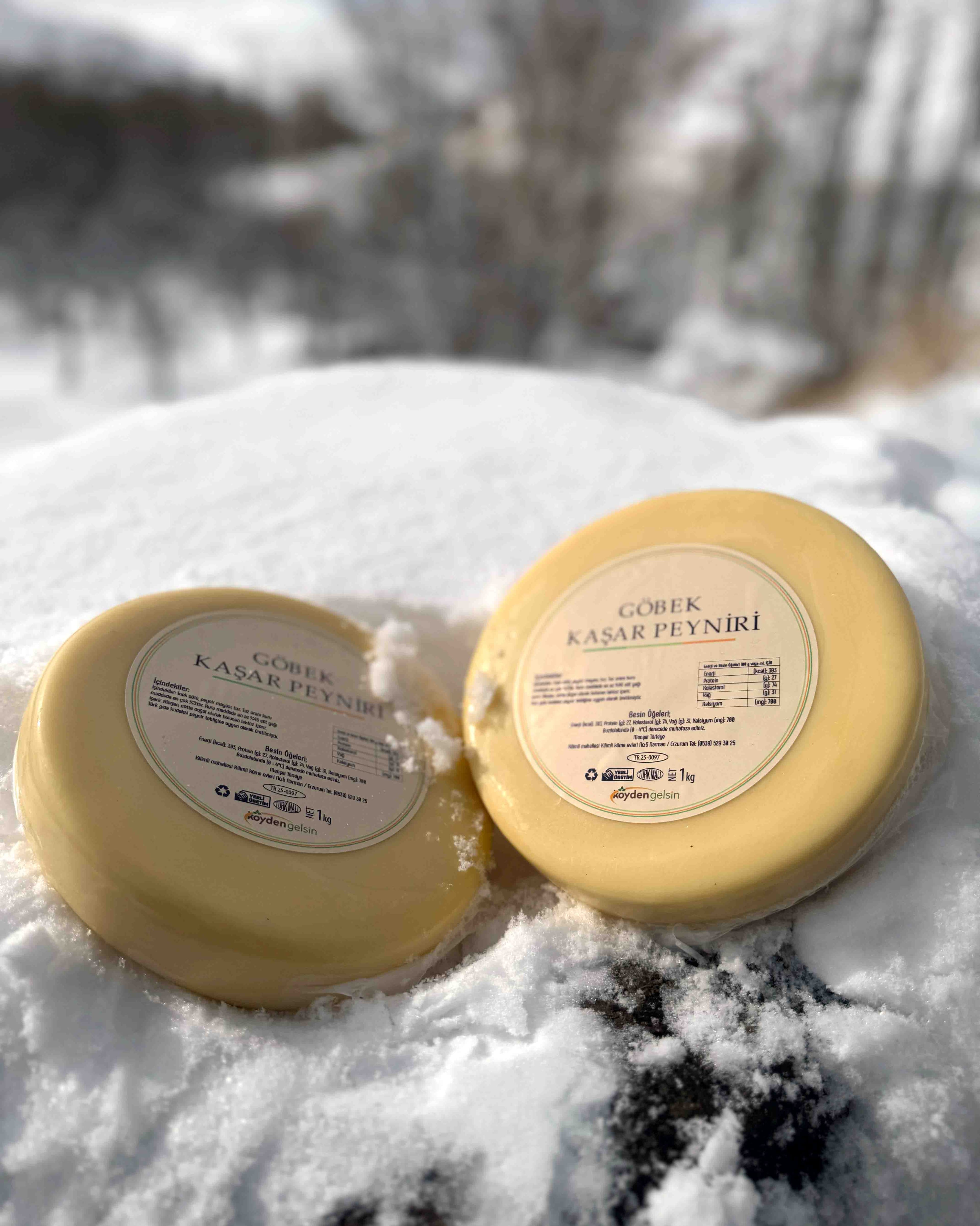 Göbek Kaşar Peyniri (Kolot Peyniri) Nedir? Kolot peyniri olarak da bilinen göbek kaşar peyniri , özellikle Doğu Anadolu bölgesinde üretilen yöresel bir peynir çeşididir. Yüksek rakımlı yaylalarda beslenen ineklerin sütlerinden elde edilir. Tam yağlı yapısı ve kendine özgü aromasıyla, kaşar peynirinin en özel formlarından biri olarak bilinir. Göbek Kaşar Peyniri Nasıl Üretilir? Süt Hazırlığı: Taze süt pastörize edilir, 33 °C’ye kadar soğutulur. Mayalama: Şirden mayası eklenerek ahşap silindir kaplarda yaklaşık 4 saat mayalanır. Dinlendirme: Pıhtılaşan karışım 1–2 gün bekletilir, böylece acı suyunu bırakır. Haşlama & Yoğurma: Peynir, 85 °C tuzlu suda haşlanır, ardından yoğrularak elastik bir hamur haline gelir. Göbek Kaşar Ayrımı: Peynirin en yağlı kısmı olan “göbek” kısmı ayrılarak kalıplara dökülür. Olgunlaştırma: Peynir, uygun koşullarda kuzey rüzgarlarıyla olgunlaşmaya bırakılır. Göbek Kaşar Peyniri Nasıl Tüketilir? Göbek kaşar peyniri; Kahvaltılarda sade olarak, Omlet, mıhlama, sandviç ve tostlarda, Poğaça, börek, pizza ve pide gibi hamur işlerinde, Fırında karnabahar, patates graten gibi yemeklerde, Künefe ve benzeri tatlılarda, Peynir tabaklarında içeceklerin yanında kullanılabilir. Göbek Kaşar Peyniri Nasıl Saklanır? Buzdolabında: Vakumlu ambalaj açıldıktan sonra, ağzı kapalı bir kapta saklanmalıdır. Derin Dondurucuda: Streç filmle sarılarak -18 °C’de uzun süre saklanabilir. Çözündürme: Dondurucudan çıkarılan peynir bir gün boyunca buzdolabında bekletilerek çözdürülmelidir. Çözülen peynir tekrar dondurulmamalıdır. Olgunlaşma sürecinde yüzeyde küf oluşması doğaldır, küflenen kısım kesilerek kalan peynir tüketilebilir. Göbek Kaşar Peyniri Alırken Nelere Dikkat Edilmeli? Sütlerin kısa sürede pastörize edilmesine, Üretim sürecinde hijyen kurallarına uyulmasına, Katkı maddesi veya koruyucu içermemesine dikkat edilmelidir. Köyden Gelsin Göbek Kaşar Köyden Gelsin olarak Erzurum’un 2200 rakımlı yaylalarında elde edilen sütleri sağımdan hemen sonra pastörize ediyor, katkısız göbek kaşar peynirimizi geleneksel yöntemlerle üretiyoruz. Ürünlerimizi soğuk zincir paketlerle Türkiye’nin her yerine ulaştırıyoruz.